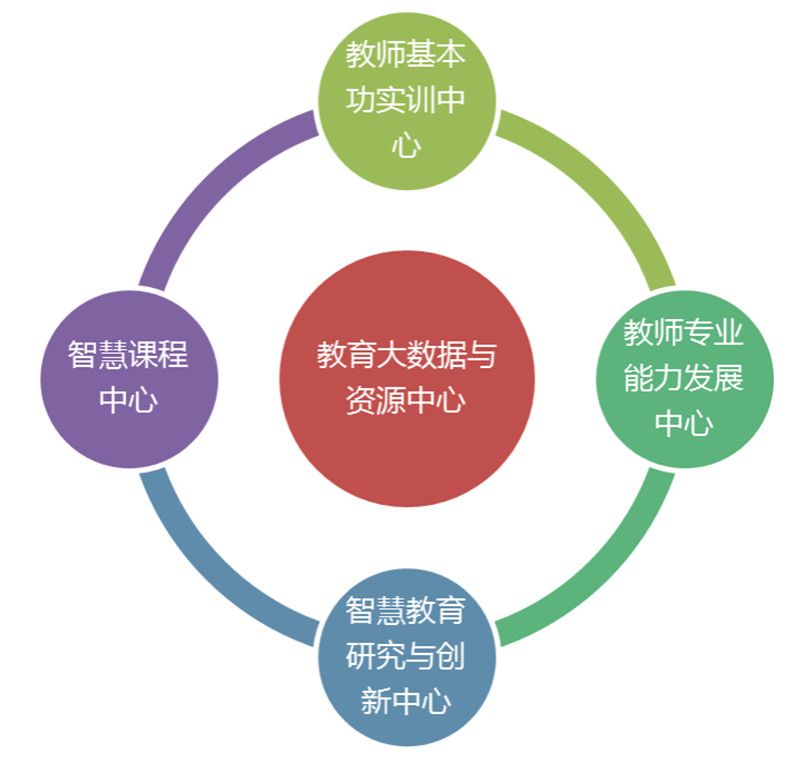 智慧课程中心是引领,通过智慧课程开发与实施将能力标准、技术工具与学科知识深度融合,通过结构化课程体系指引各中心资源协同方向,确保教师职业能力培养的目标一致性、内容系统性与路径科学性。