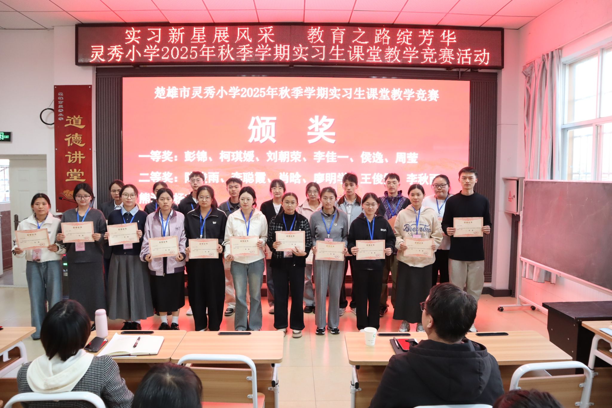 为深化UGS协同育人机制,检验协同培养成效,2025年11月12日至14日,楚雄师范学院与楚雄市灵秀小学联合为20名小学教育专业(公费)实习生举办了题为“实习新星展风采 教育之路绽芳华”的专场课堂教学竞赛。
