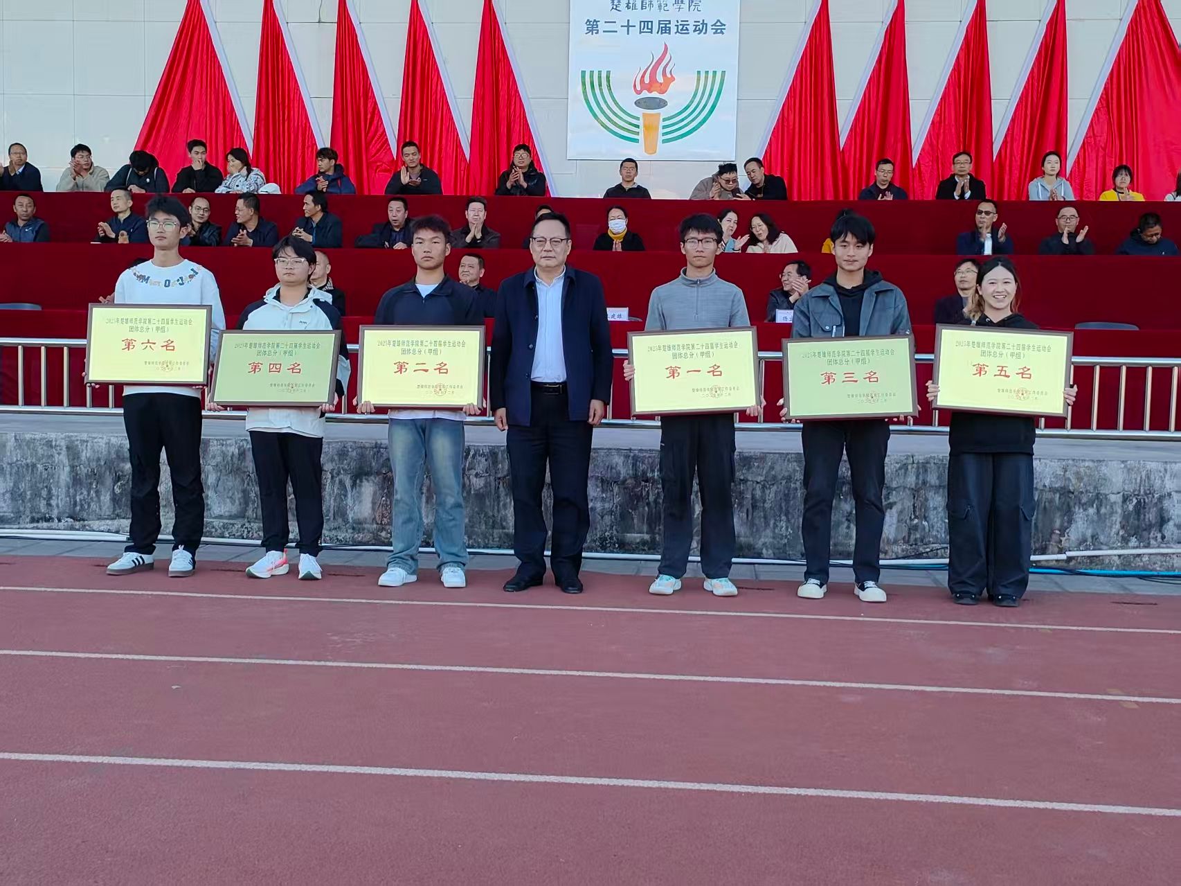 在为期两天半的激烈角逐中,教育学院健儿奋勇拼搏、屡创佳绩,最终以优异表现荣获甲组团体总分第一名,并同时斩获体育道德风尚奖,实现竞技水平与精神文明双丰收。