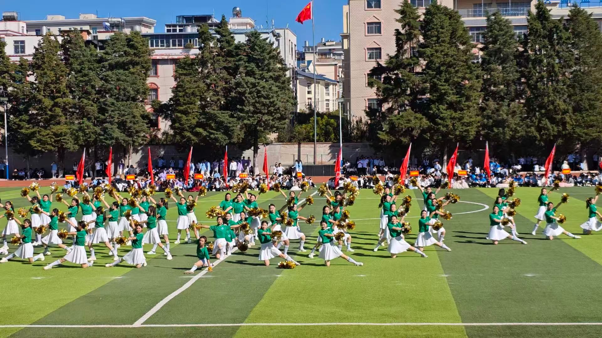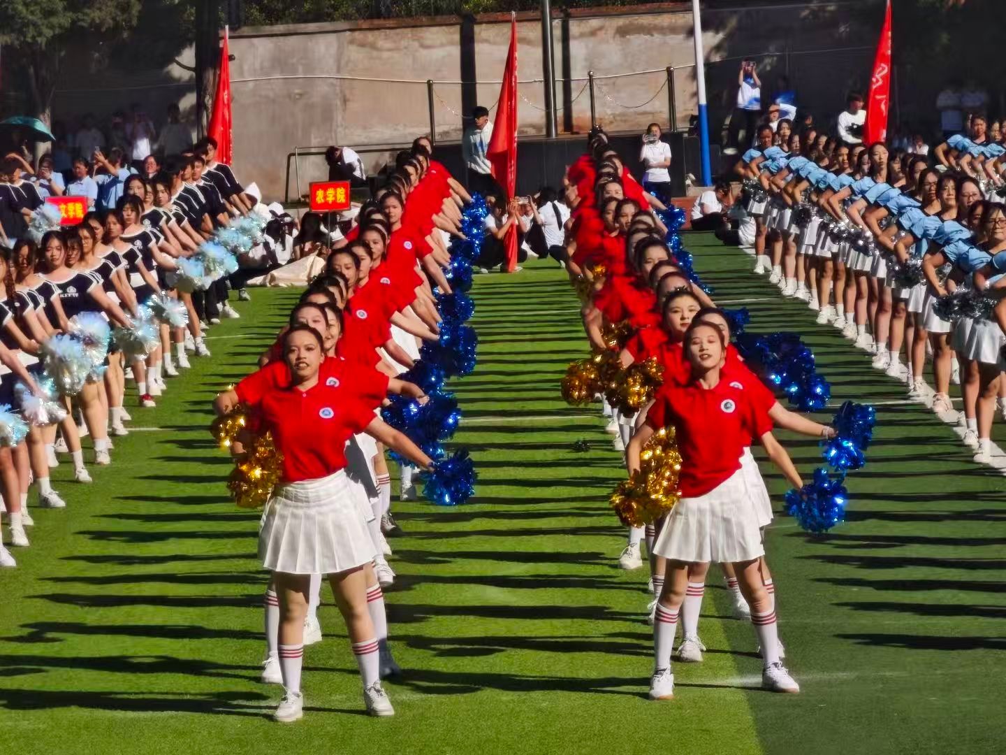 开幕式上,我院团体操方阵动作协调、节奏明快,以流畅的队形变换和富有张力的肢体语言,诠释了集体协作之美;啦啦操队员活力四射、笑容灿烂,用动感舞步点燃全场热情,赢得阵阵喝彩。