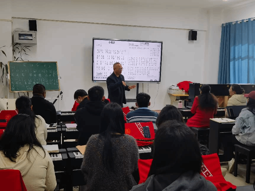 杨富云老师开设“钢琴即兴伴奏与实践”系列课程,涵盖伴奏基础、和声编配、分学段教材实训等内容,并开展一对一指导,促进技能转化。