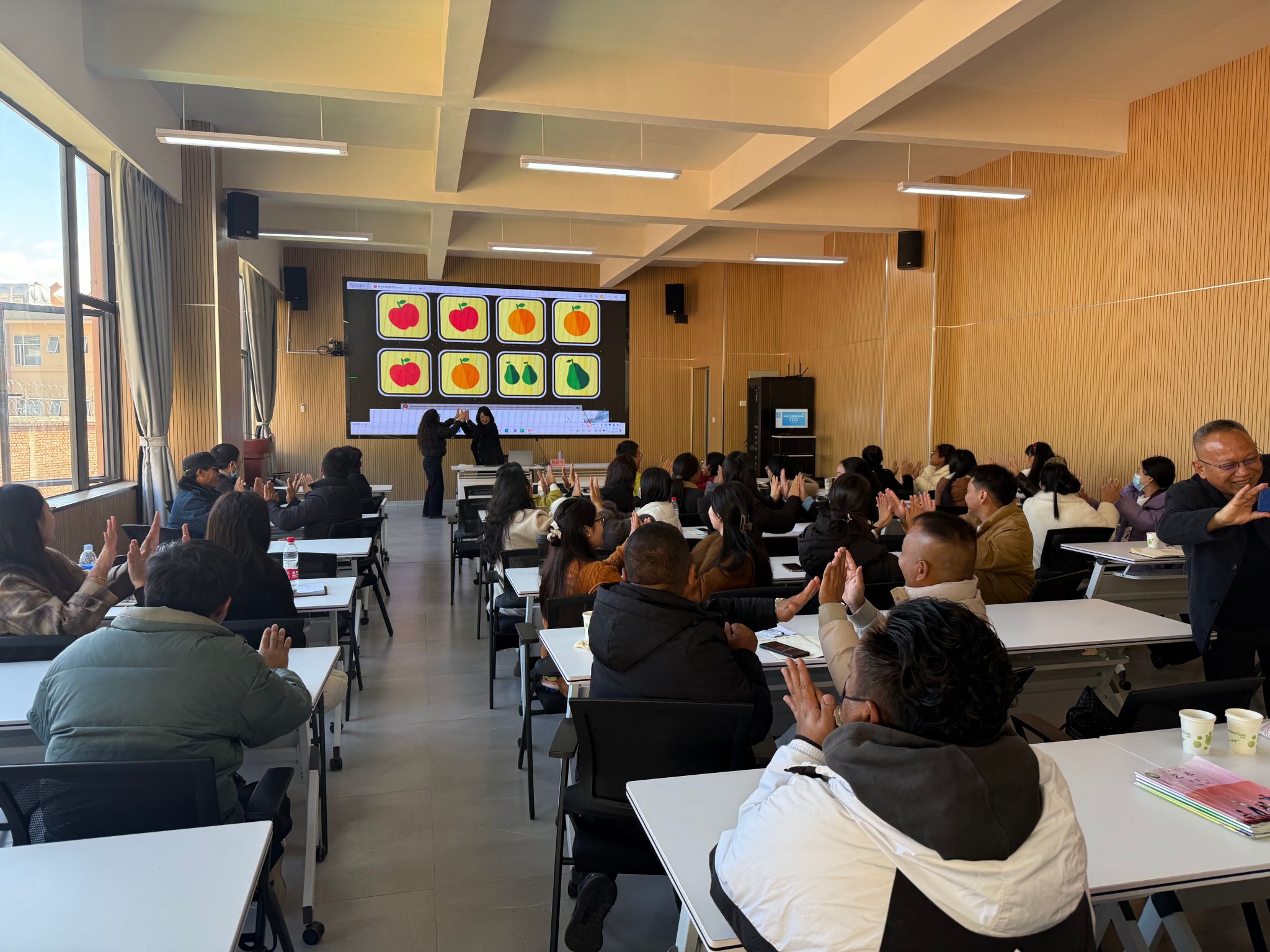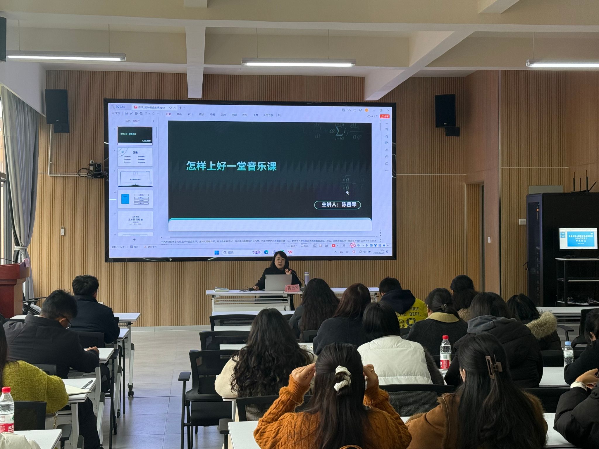 为期三天的培训紧密围绕《义务教育艺术课程标准(2022版)》与国家义务教育质量监测要求展开。音乐系主任陈岳琴教授主讲“国家义务教育质量监测视角下中小学音乐教材全册解读与备课实操”,系统梳理教材体系与教学目标;《奥尔夫教学法赋能音乐课堂》专题则引导教师掌握以学生为中心,融歌唱、欣赏与创编于一体的综合教学策略。
