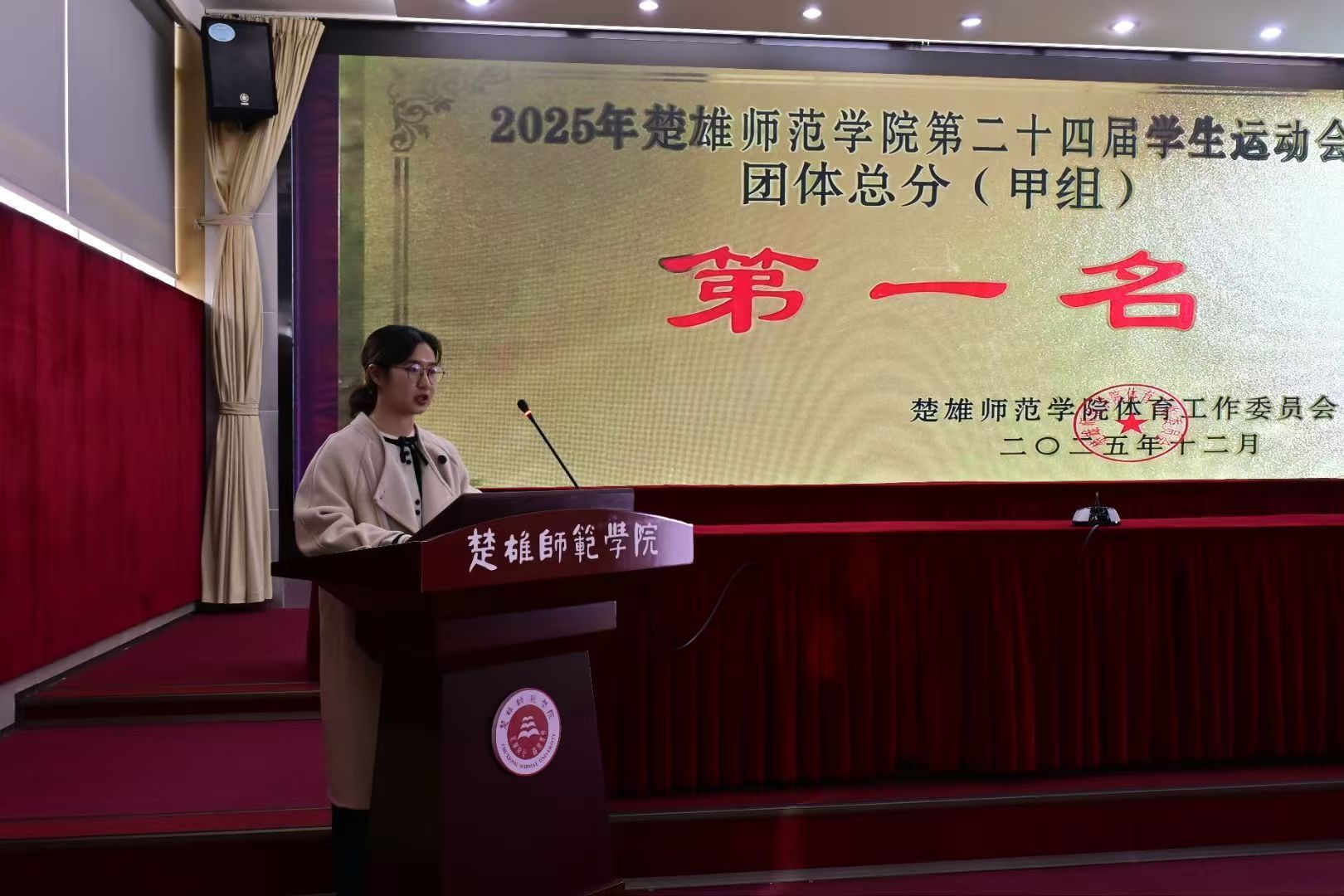 为进一步弘扬体育精神,凝聚青春奋进力量,激励广大师生在新征程上再创佳绩,2025年12月24日,教育学院举行第二十四届校级运动会优秀运动员与服务人员表彰大会。学院党委书记李飞、副院长乐林会、团委书记王朝琼出席大会,大会由李心月同学主持。