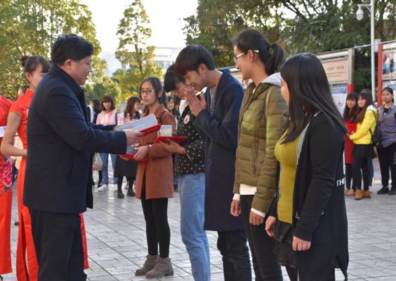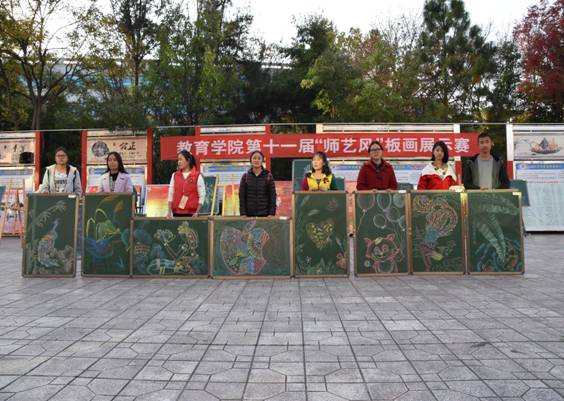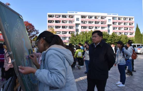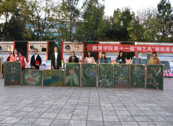 2016年12月7日下午4点,教育学院在新校区溢香餐厅前举办了教育学院第十一届“师艺风”板画展示大赛。楚雄师范学院罗明东校长,陆华副校长、教务处施红星处长等领导莅临展赛现场参观指导,教育学院全体师生到场观看了本次比赛。