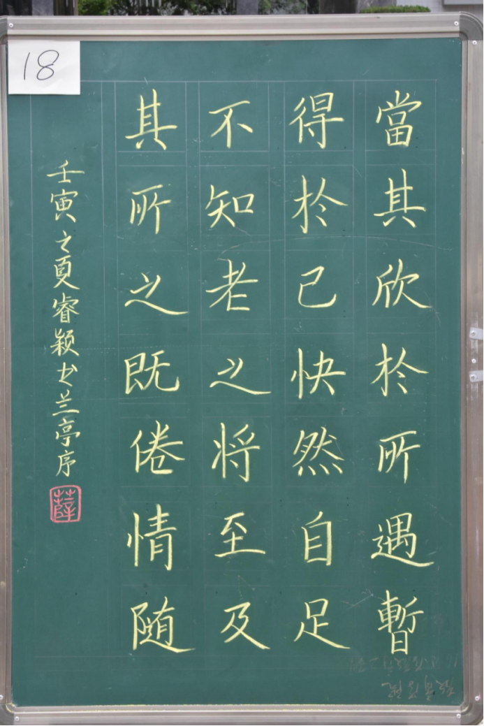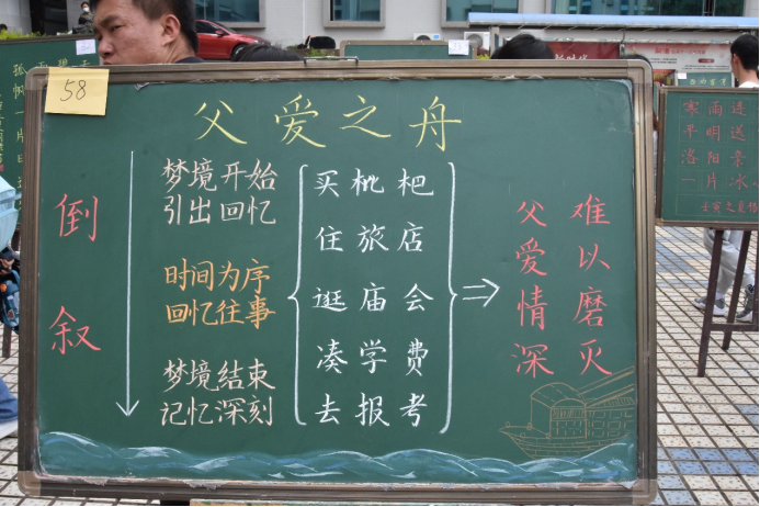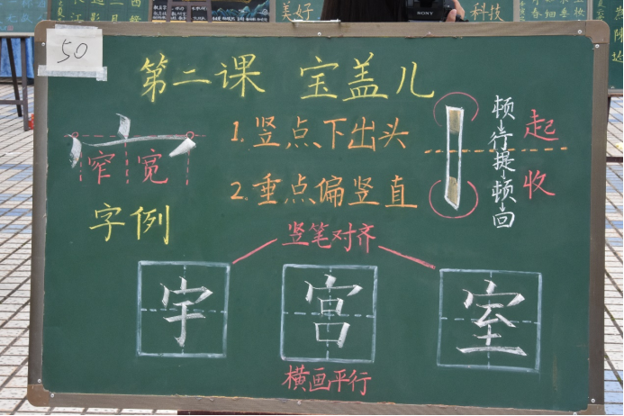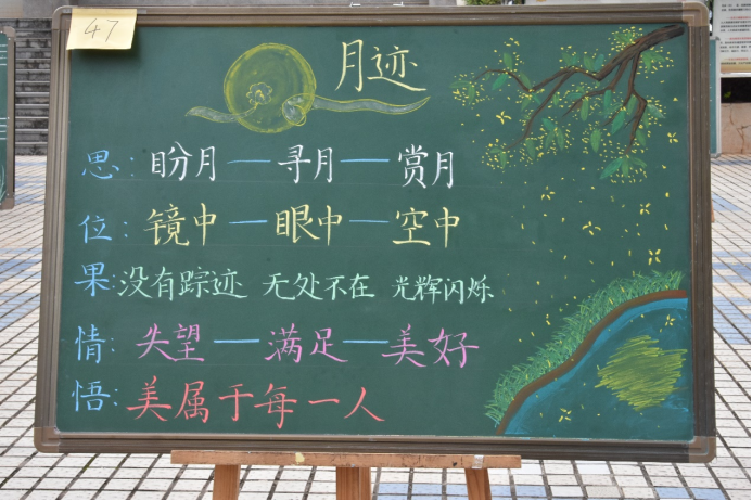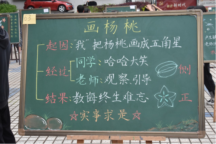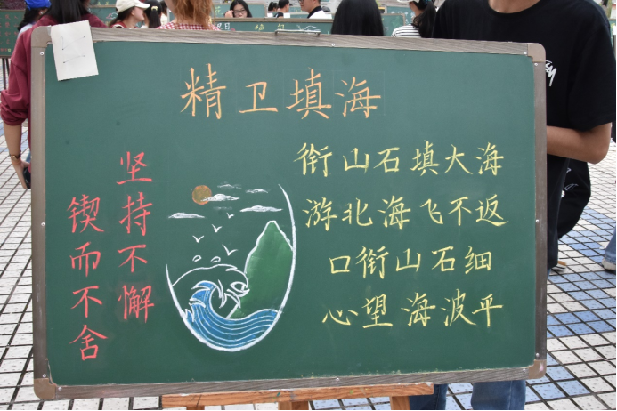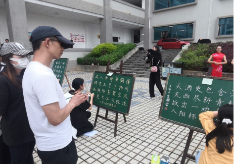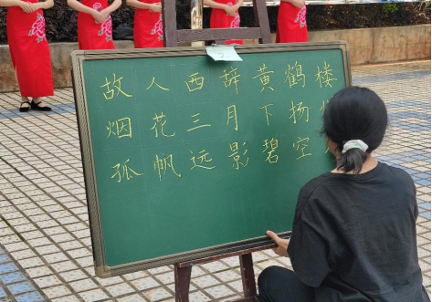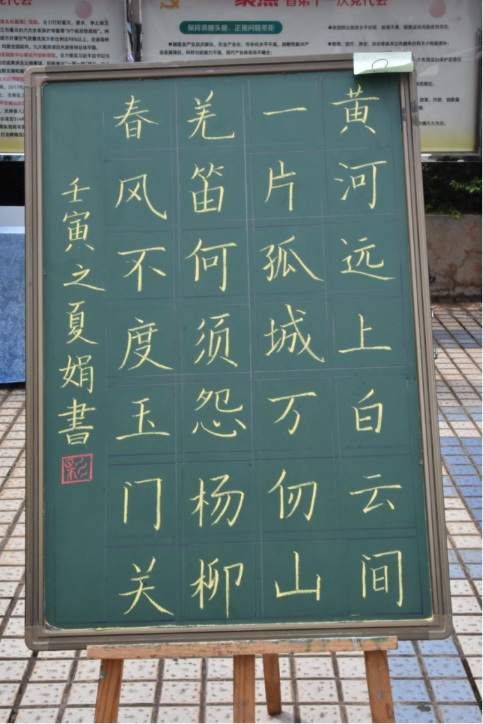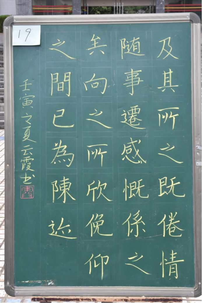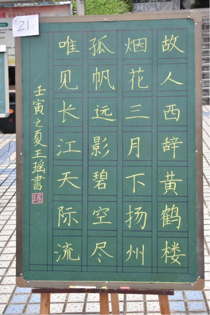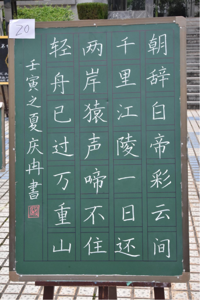 白石滚落墨池,溅起灵光点点;银剑划过木炭,激起火星无数。每个选手都有着独属于他们的风华,驰骋在板书的海洋。他们笔下的字儿灼灼其华,他们心中的人儿鲜衣怒马,青云直上。他们奋笔疾书在黑板前,与时间赛跑,铆足了劲儿在有限的时间内展现出自己独一无二的作品。