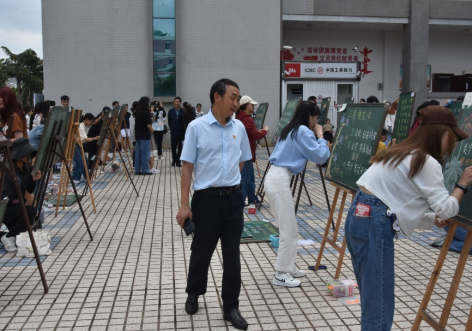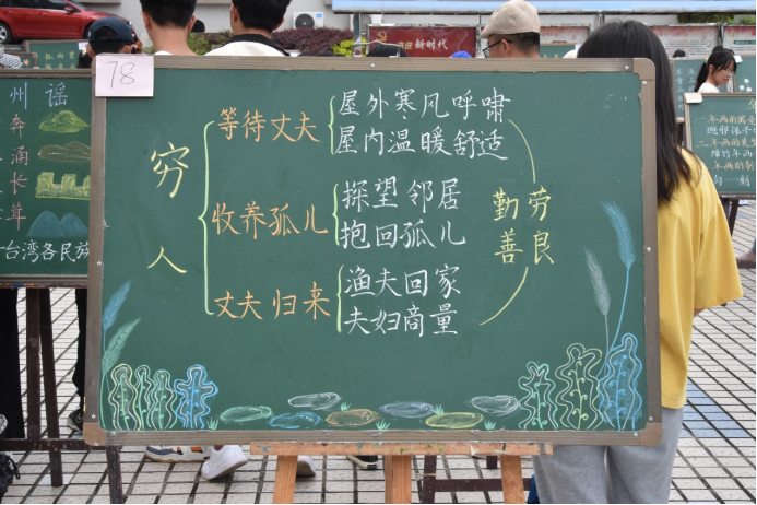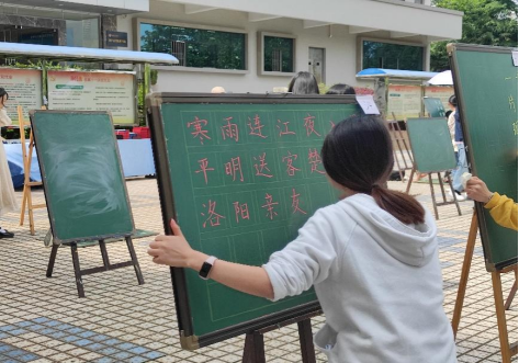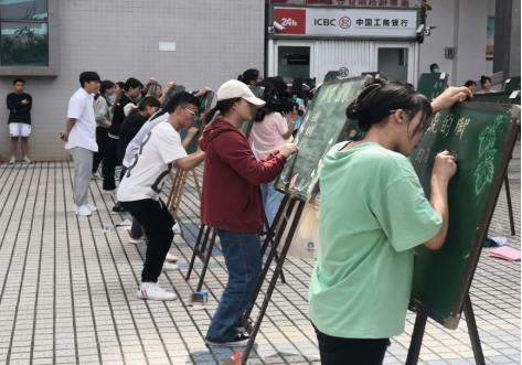 经过初赛的比拼,我院2020级和2021级共81名选手脱颖而出成功进入决赛。在决赛现场,选手们在规定的时间内,认真临摹、精心设计,用文字、图形、线条、符号等多种元素呈现自己的板书作品。