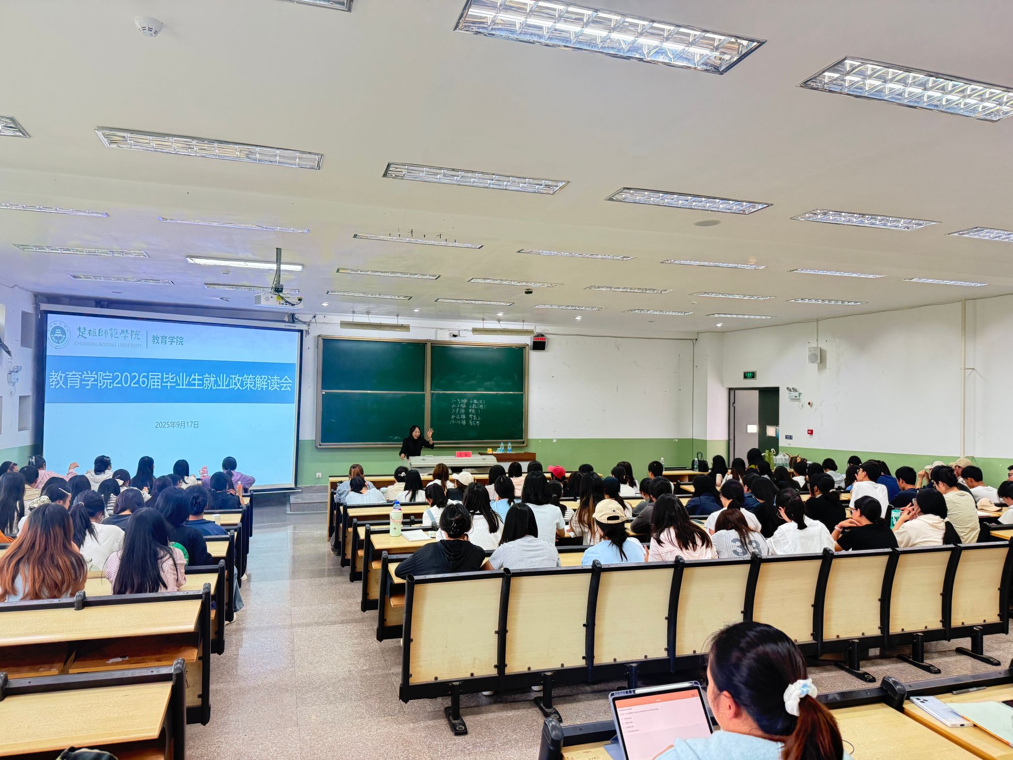 为帮助2026届毕业生尽早了解当下就业形势、掌握就业相关政策、合理规划就业黄金期,教育学院于2025年9月17日针对2026届毕业生组织开展了主题为“把握政策机遇,规划职业未来”的政策解读会暨就业知识专题讲座。